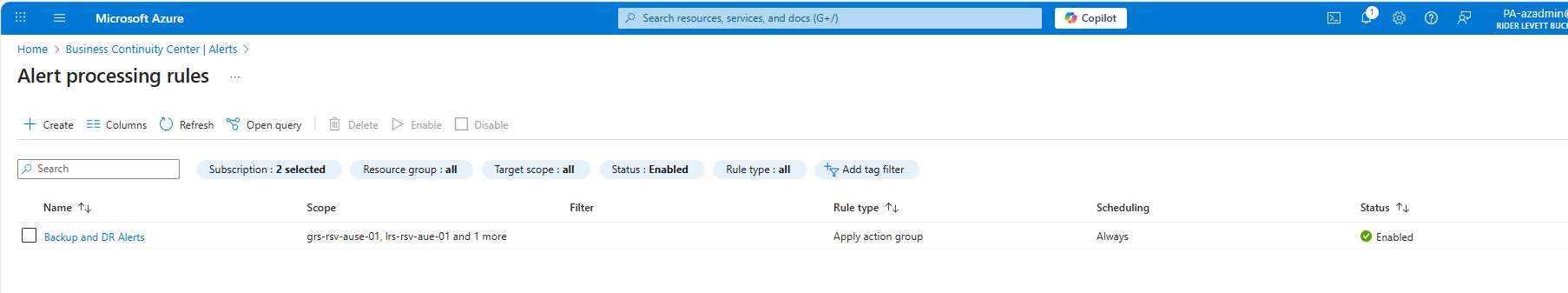 Azure Monitor Backup Alerts