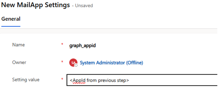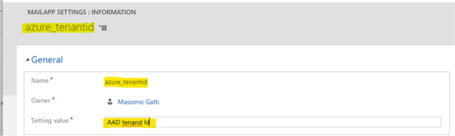 - Access to the entity with setting via page: https://<org_domain>/main.aspx?pagetype=entitylist&etn=mailapp_setting