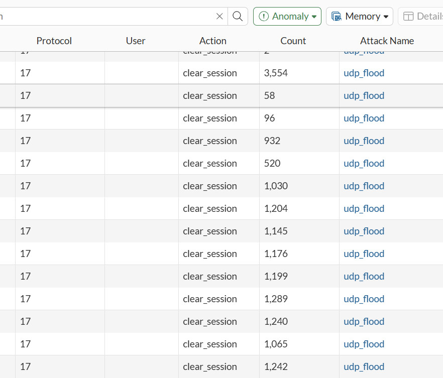 The DOS Policy was clearing the session due to UDP_FLOOD