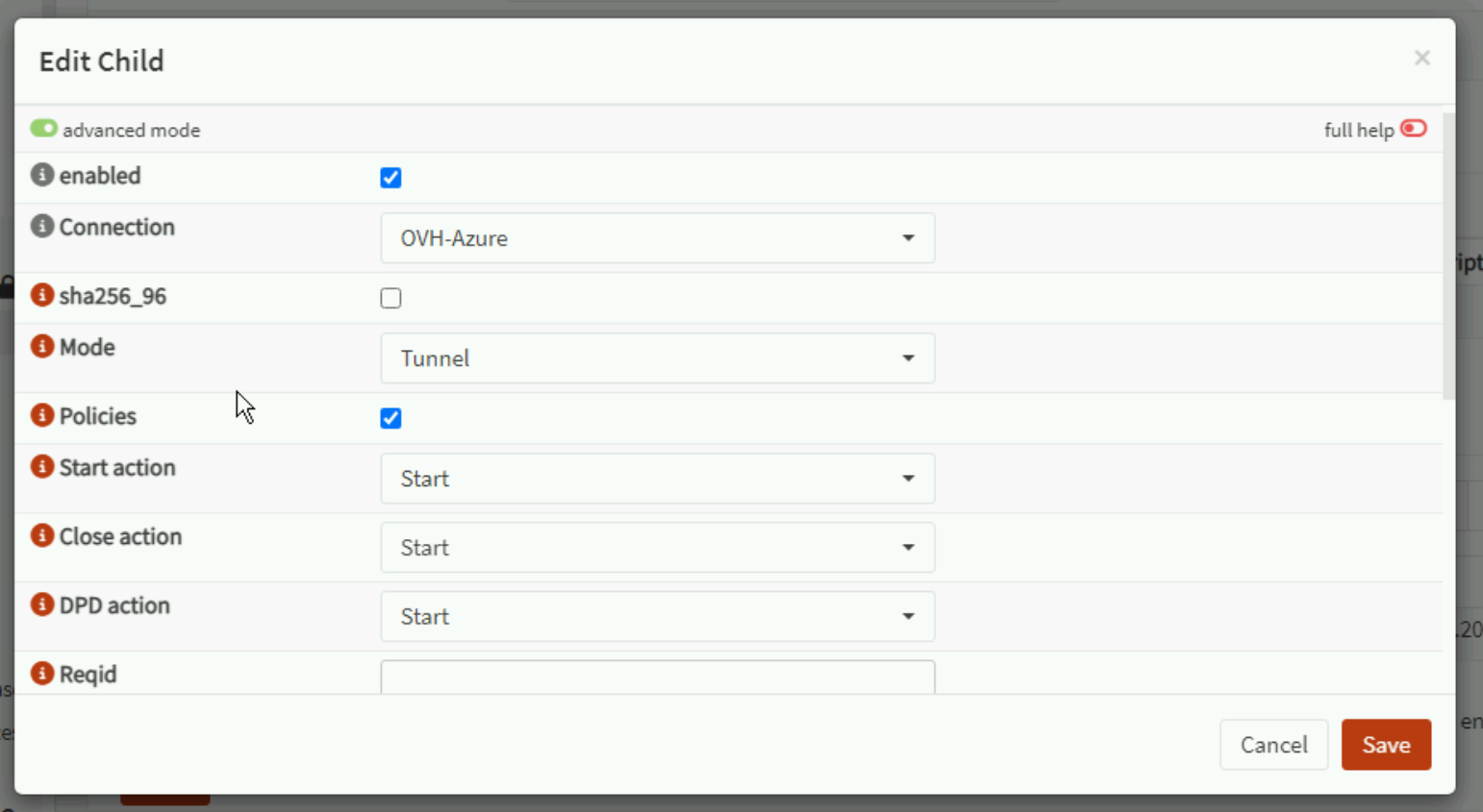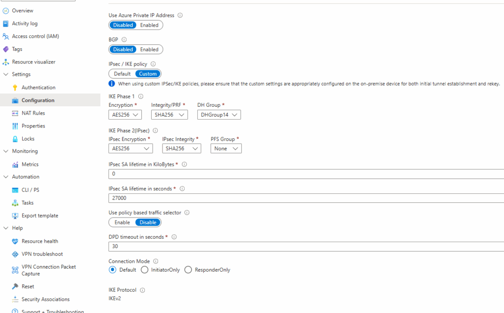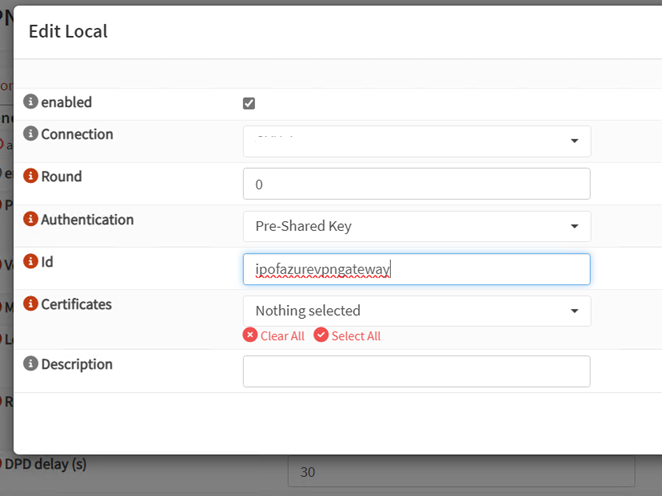 Remote Address : Azure VPN Gateway IP